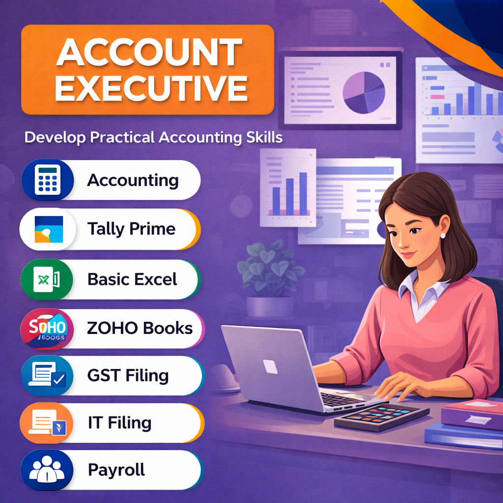 The Account Executive Course is an intermediate-level program that helps you handle real business accounting tasks. It bridges the gap between basic knowledge and professional accounting work used in companies.