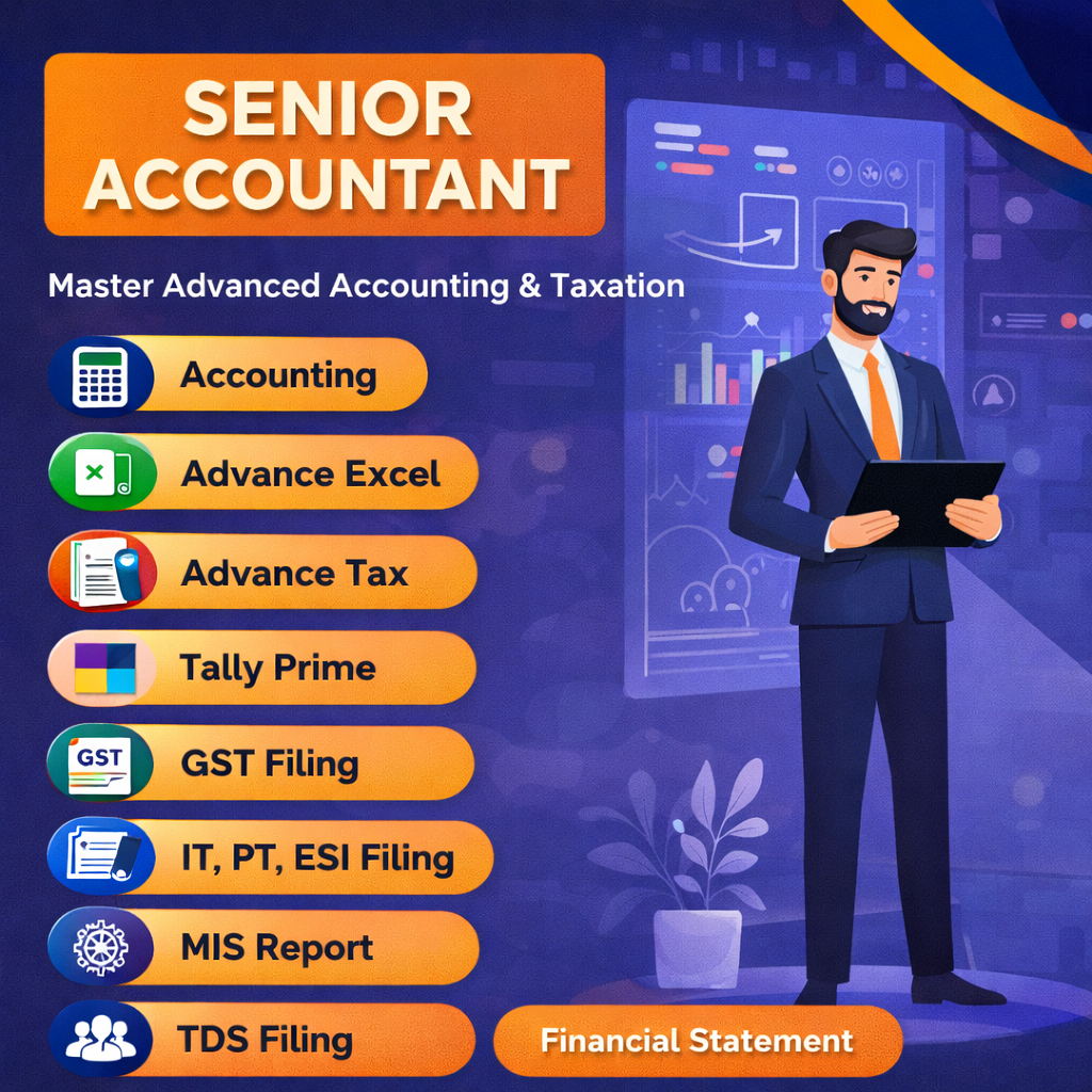 The Senior Accountant Course is an advanced, industry-focused program designed to make you job-ready for senior-level roles. It covers complete accounting, taxation, compliance, and reporting with practical exposure.get more Information